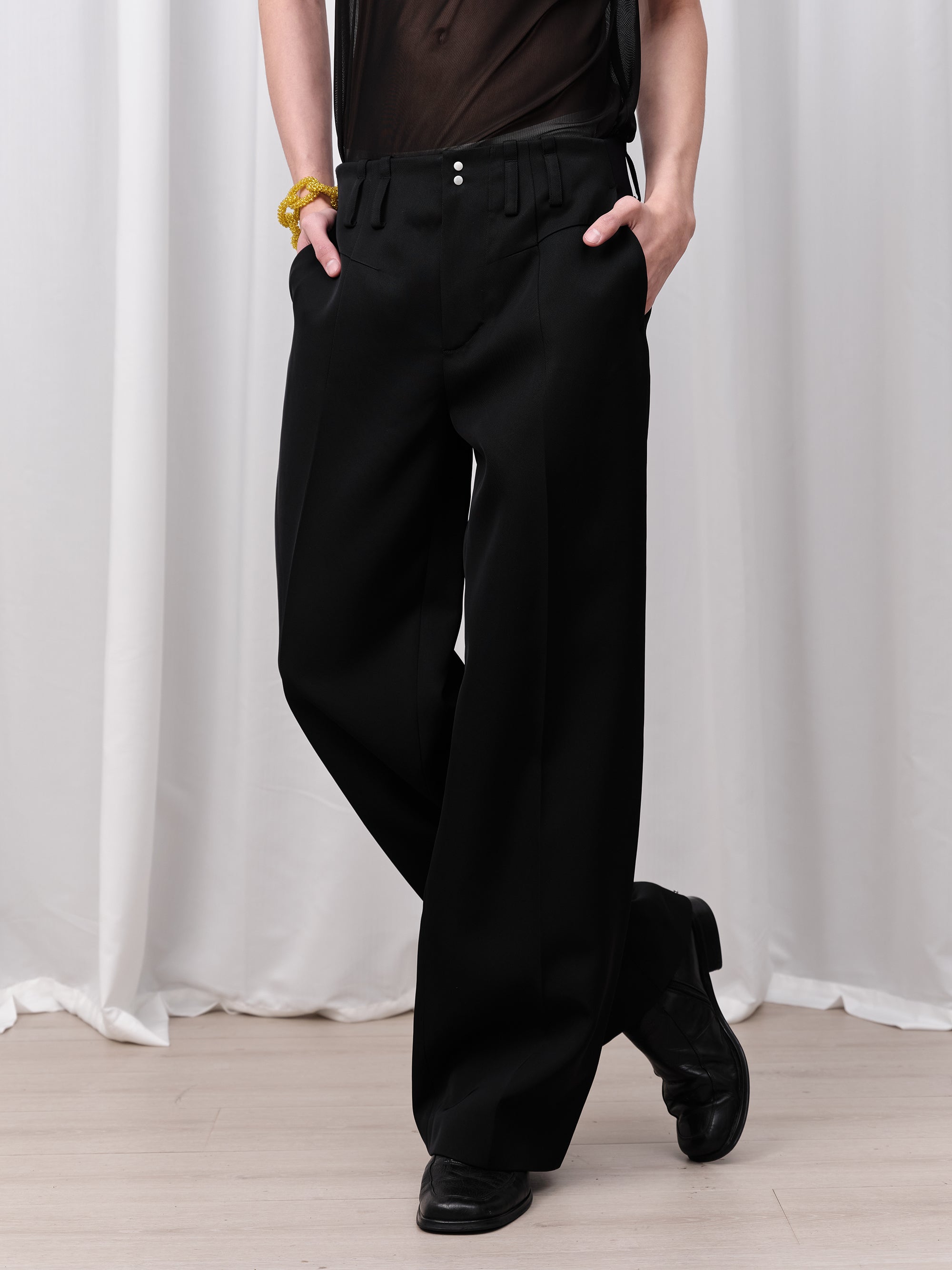Dual snap-button hem for adjustable styling: straight or tapered