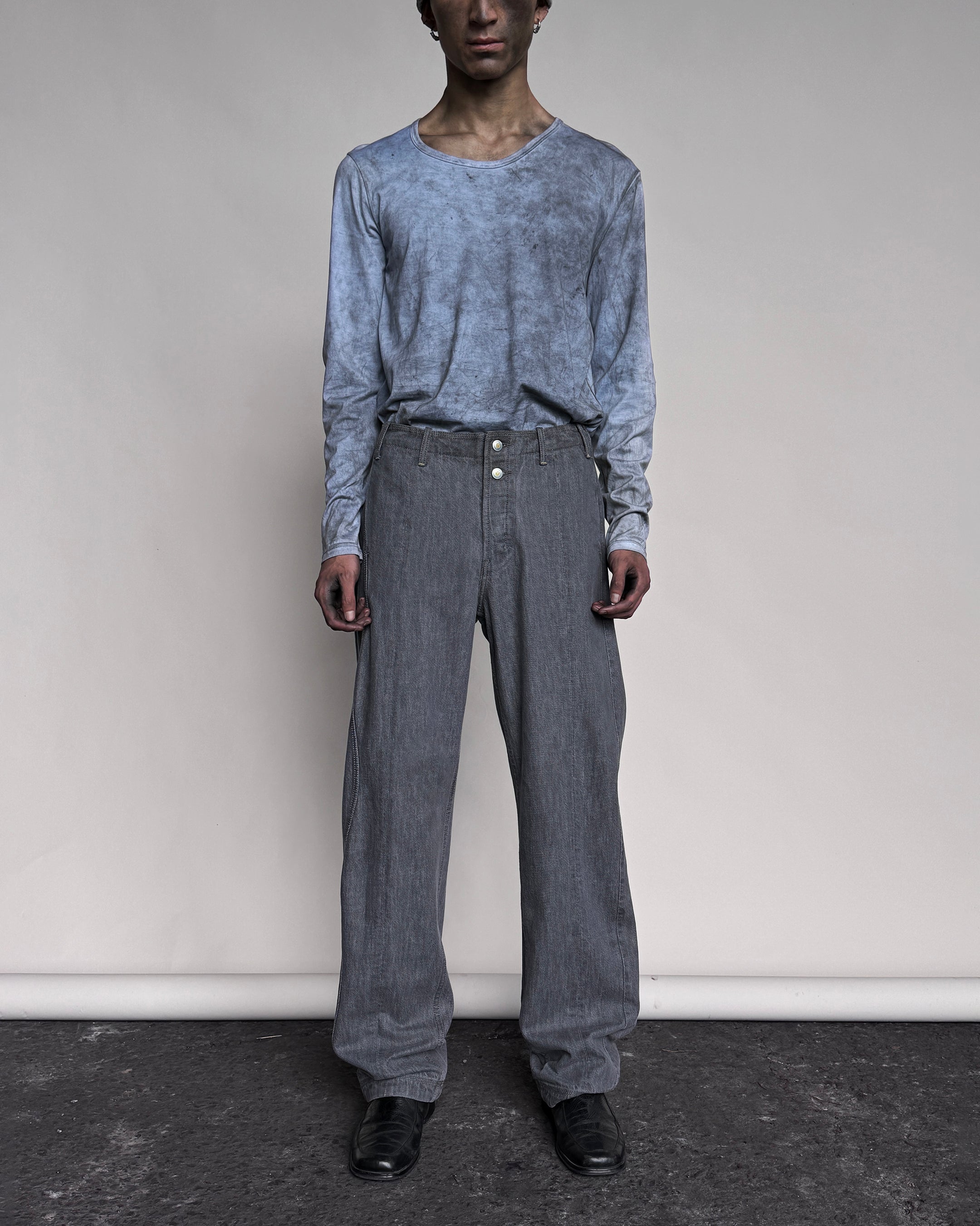 Special washing methods give the grey cowhide a unique texture