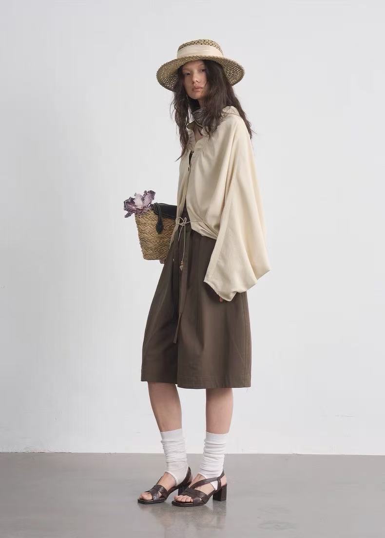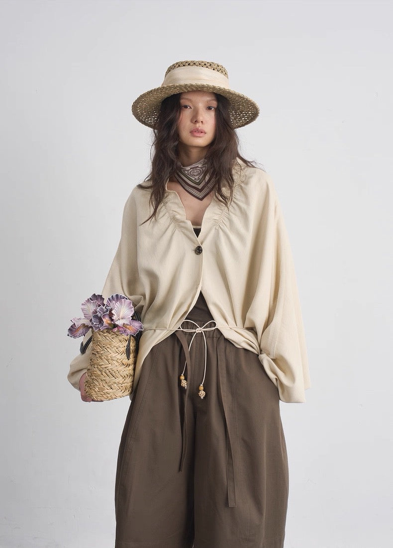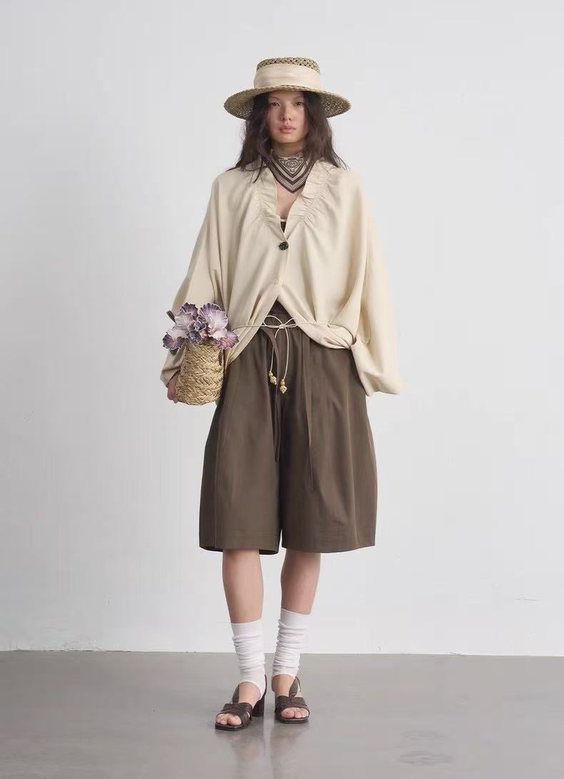 Back pleats with a hidden adjustable drawstring for customizable shape
