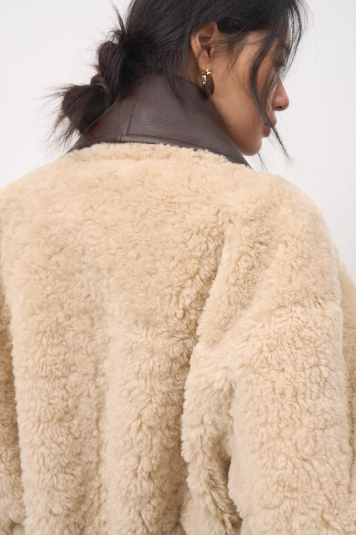 Large, plush imitation lamb’s wool for a rich, warm texture