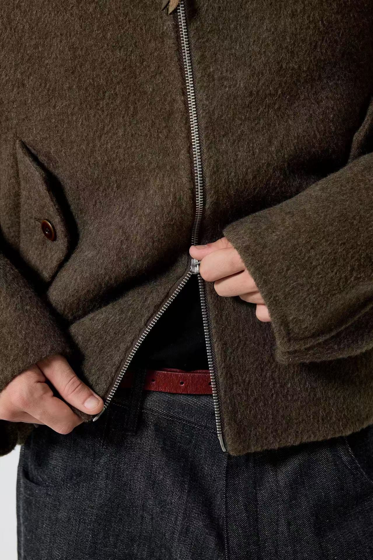 Custom zip pull with leather cord detailing