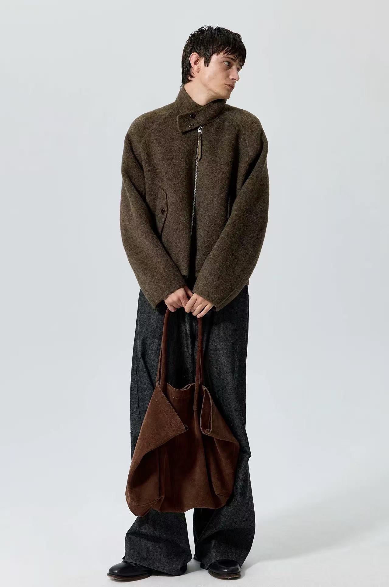 Simple Project Harrington Jacket-Brown