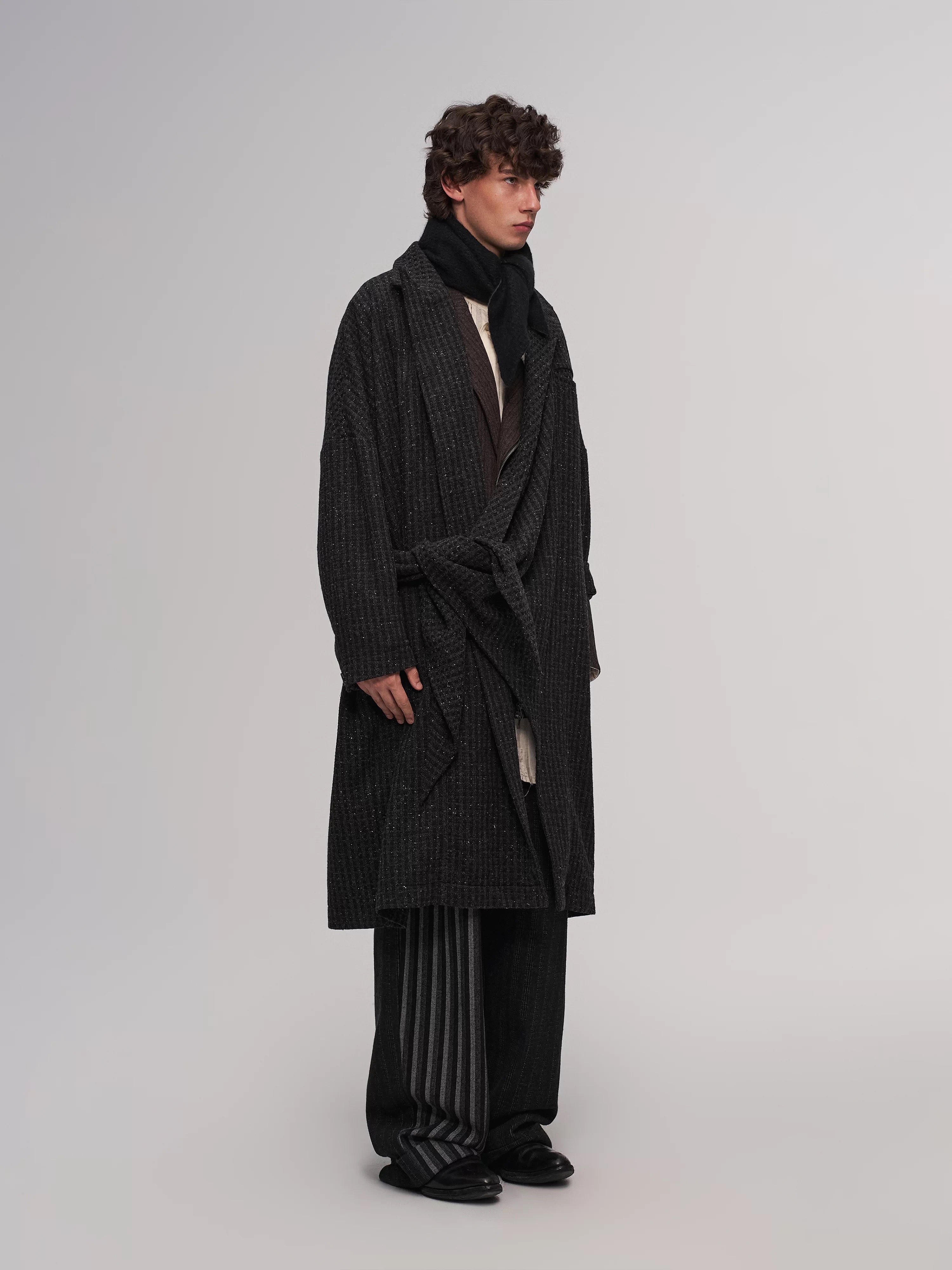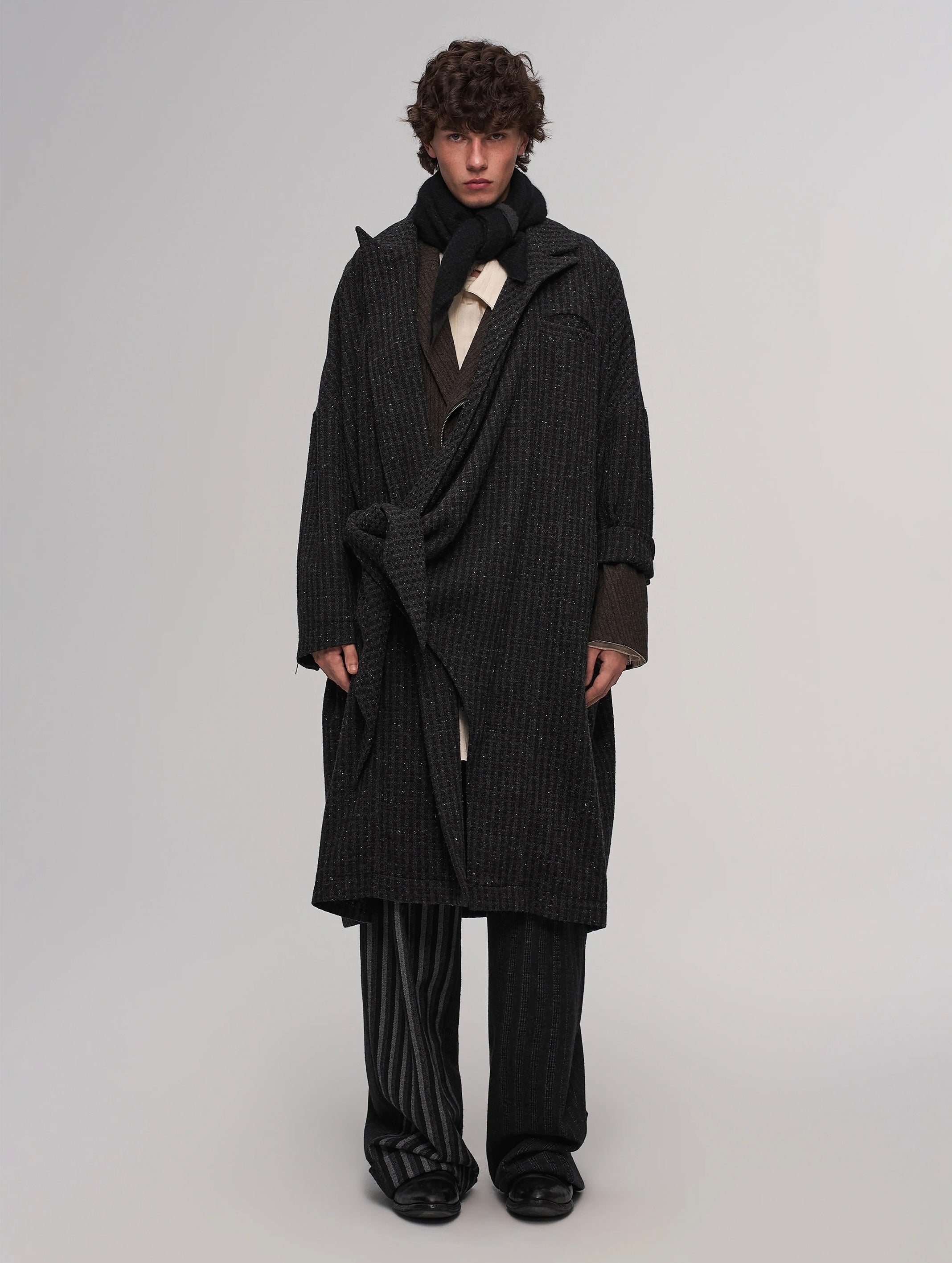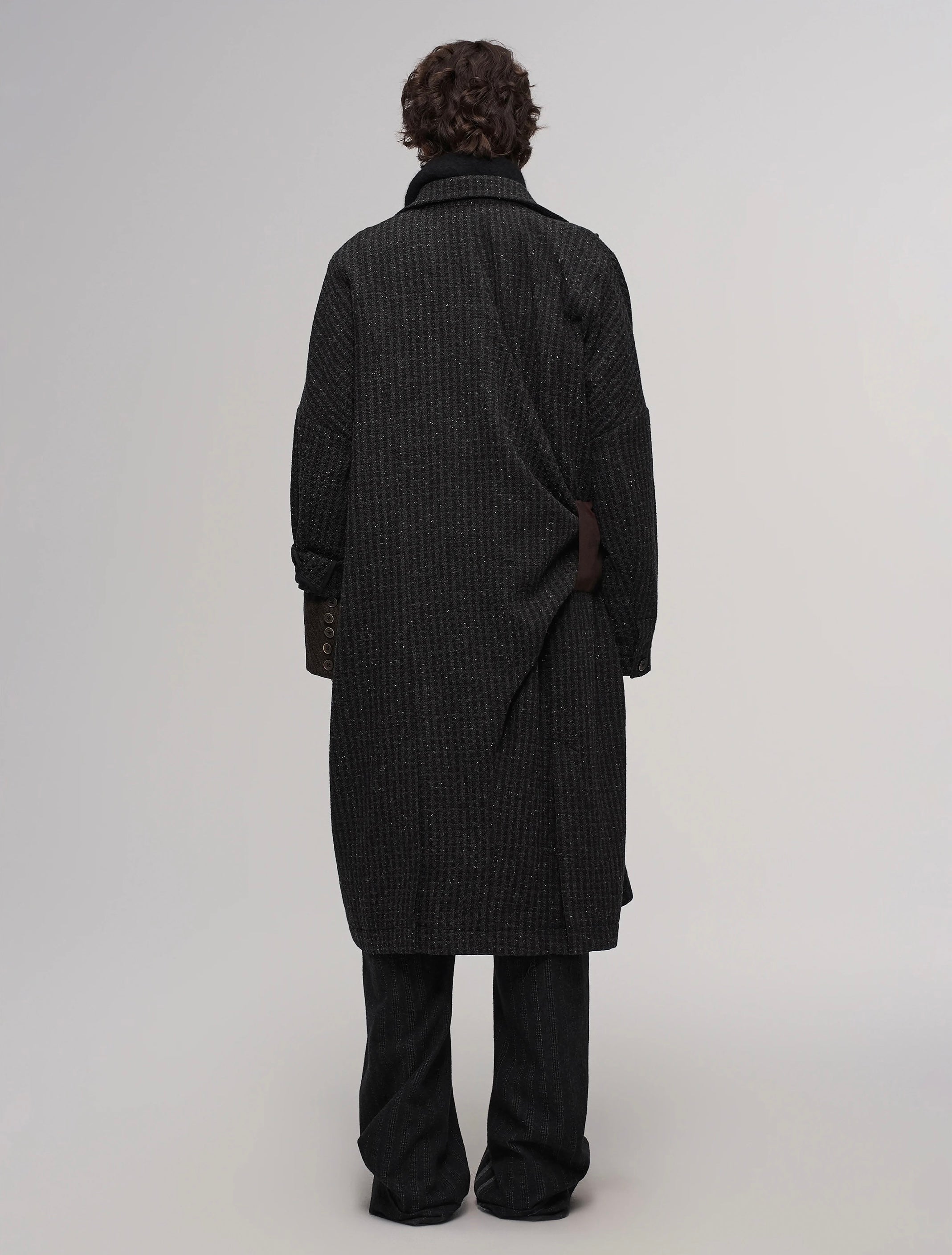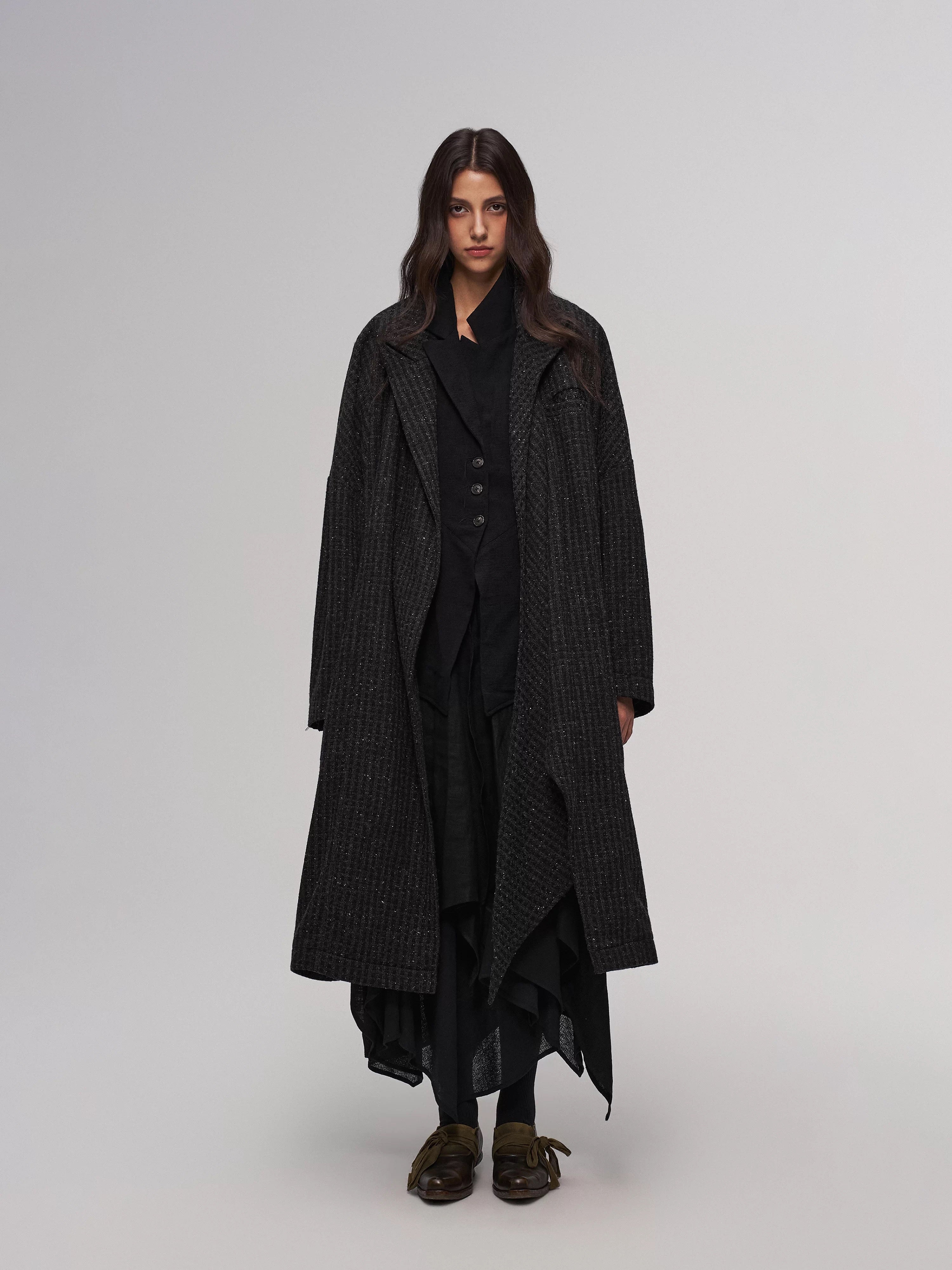 Mid-length coat with a structured, draped silhouette