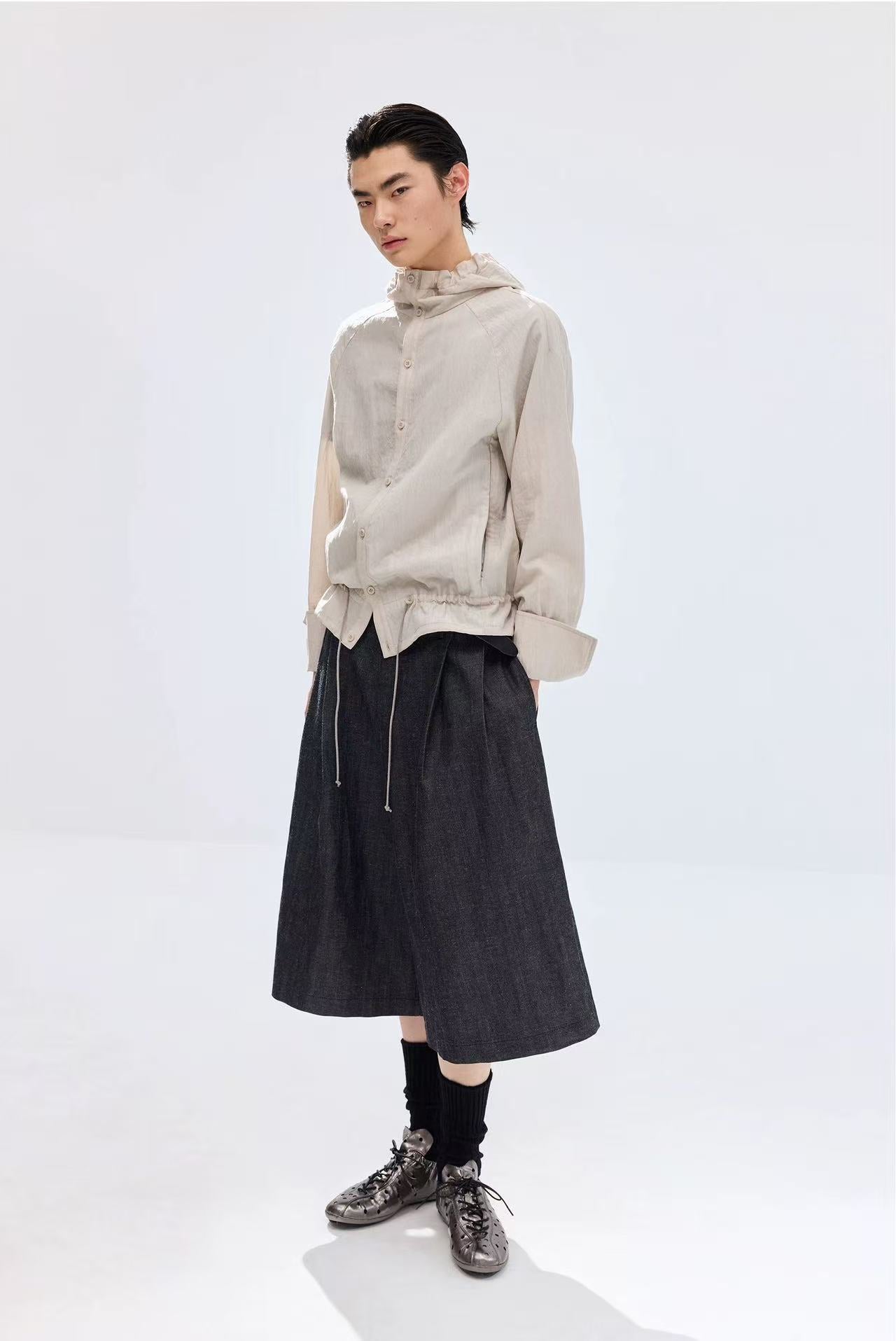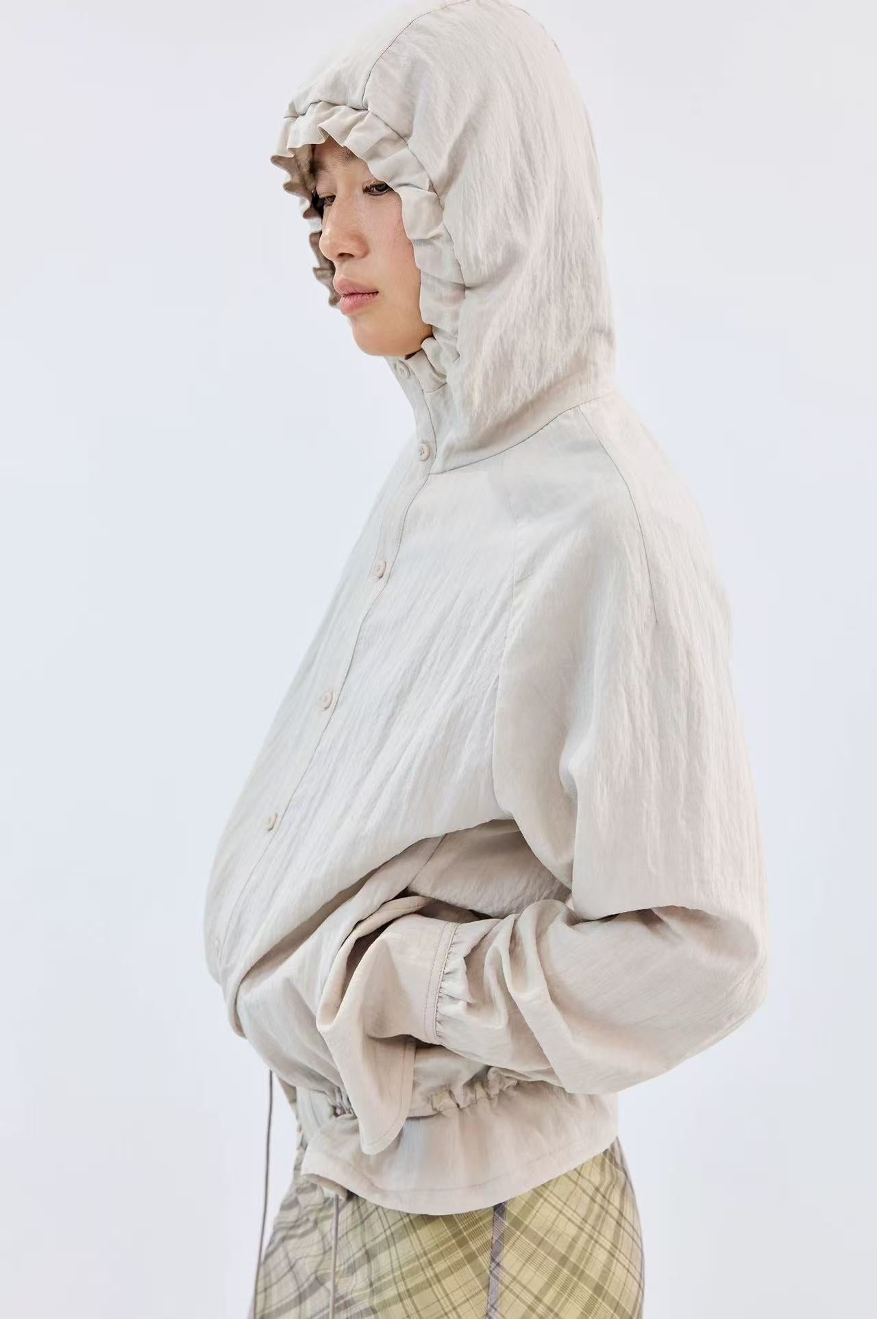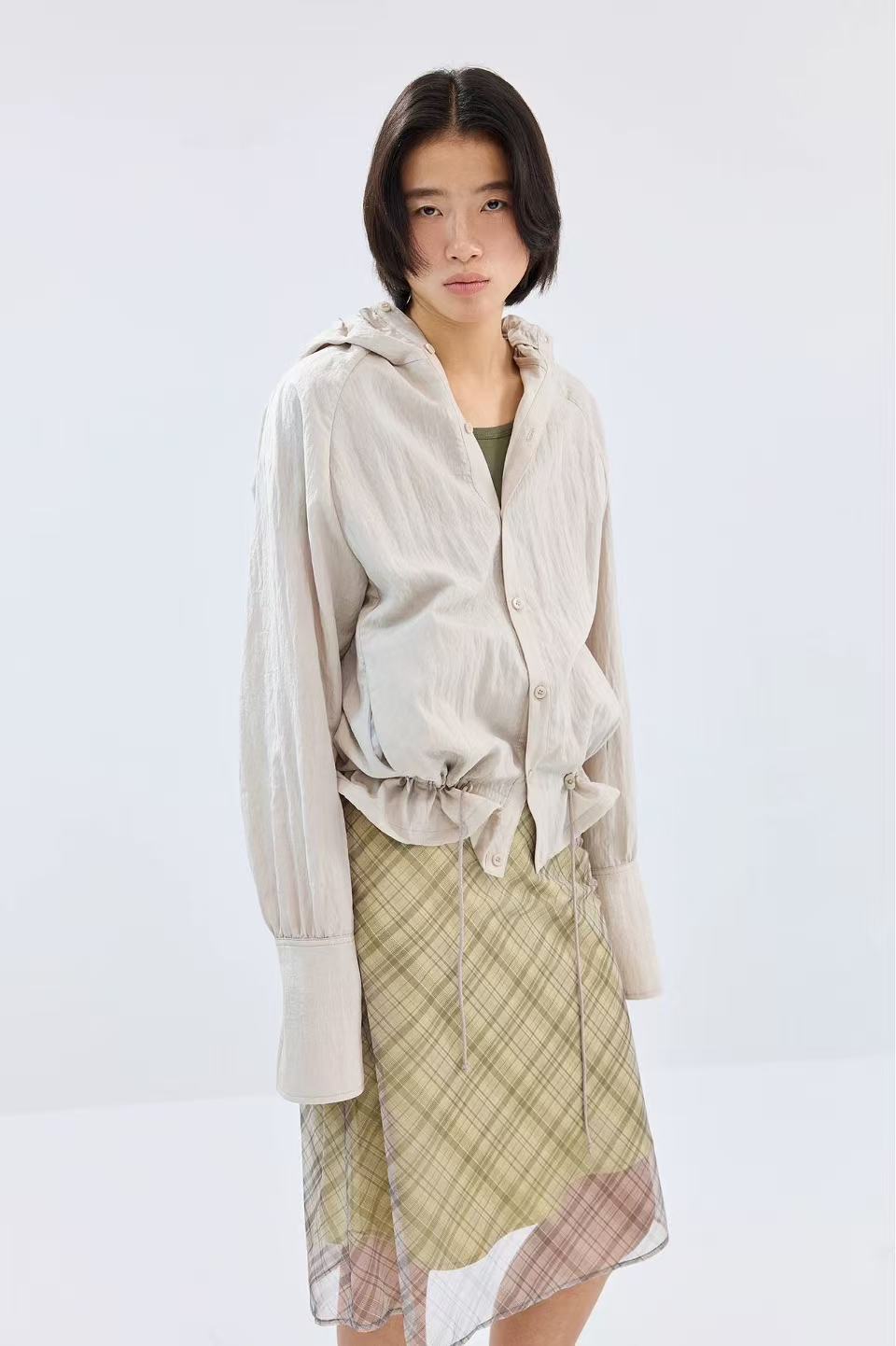 Simple Project Lace-up Hooded Shirt-Ivory