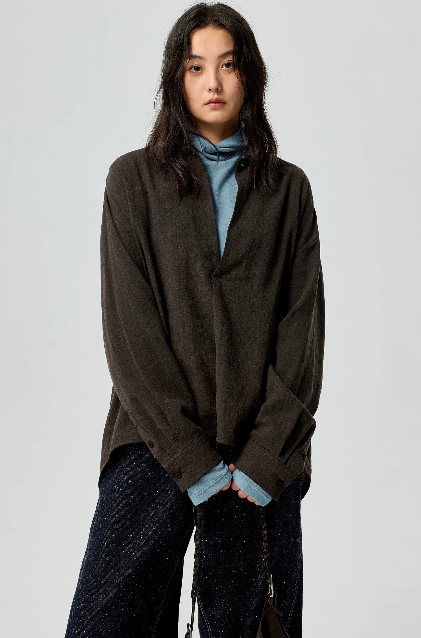 Simple Project Ramie Shirt-Brown