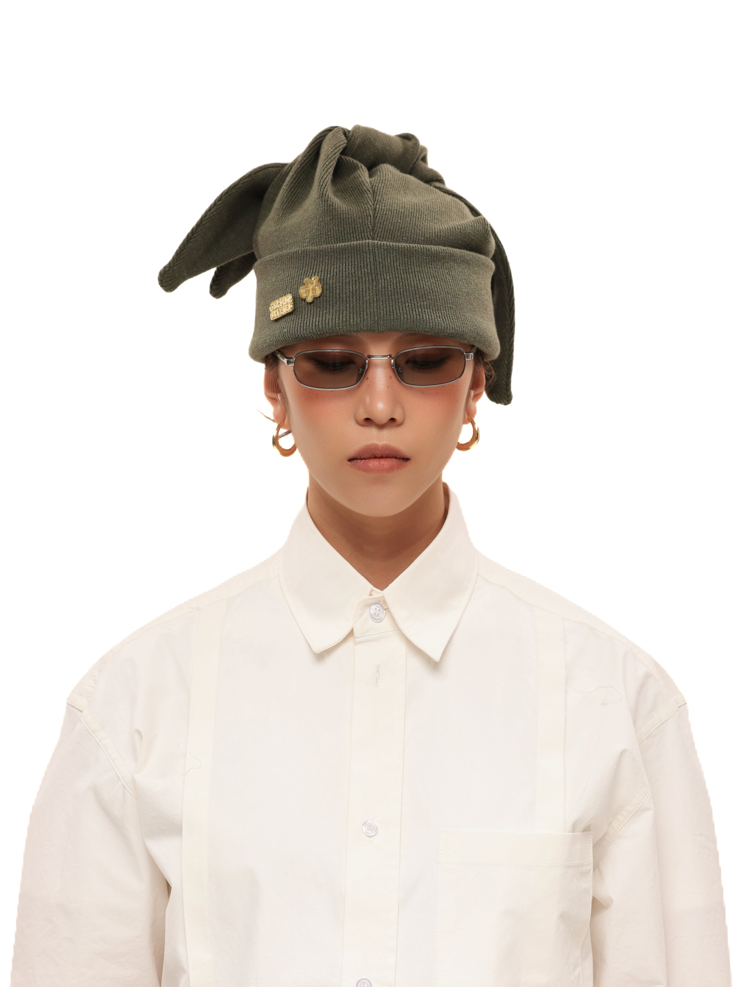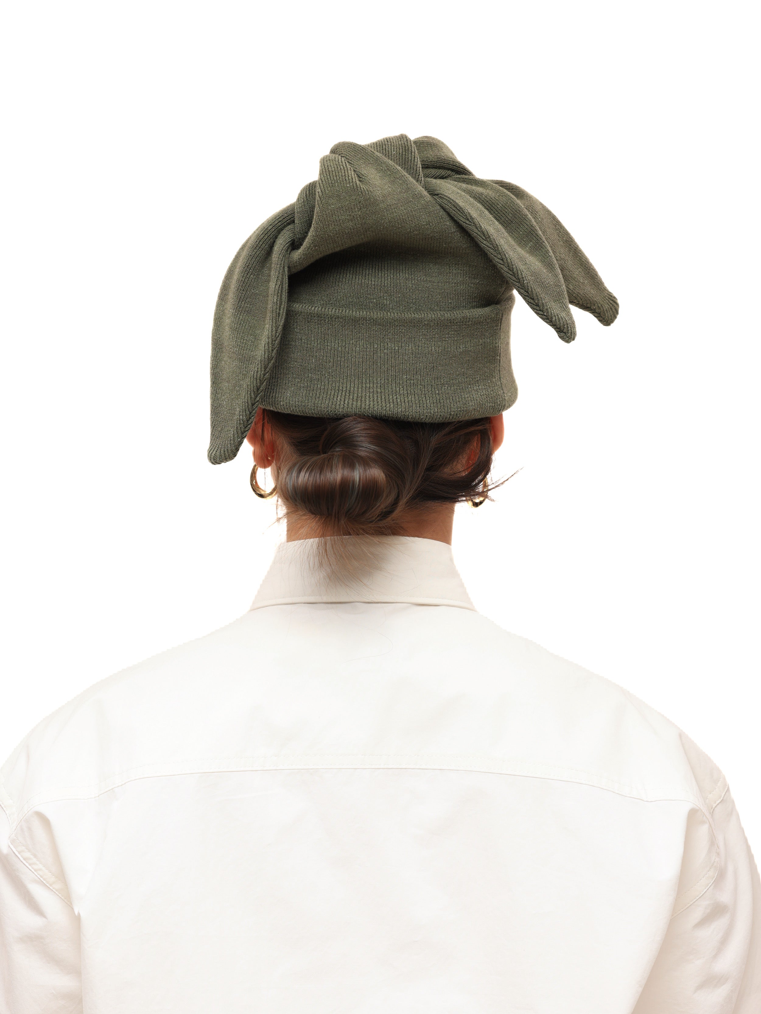 6CRAYON Three-Ear Knit Beanie-Mottled Green
