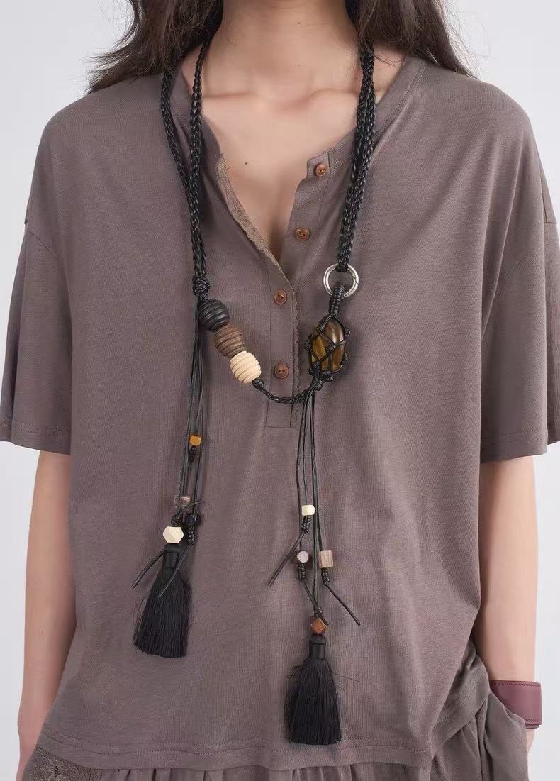 Materials: PU leather cord, natural stone, wooden beads, and zinc alloy