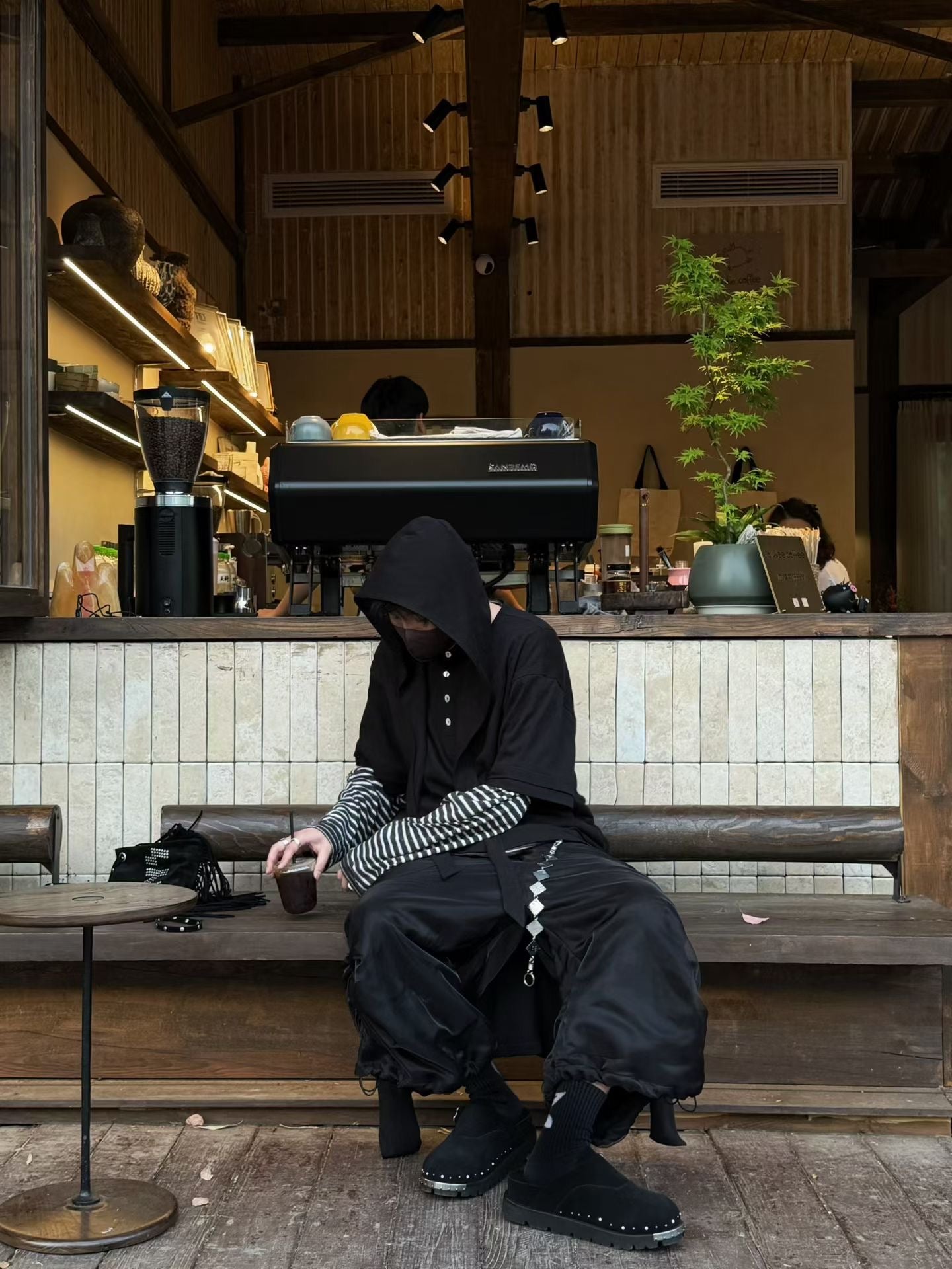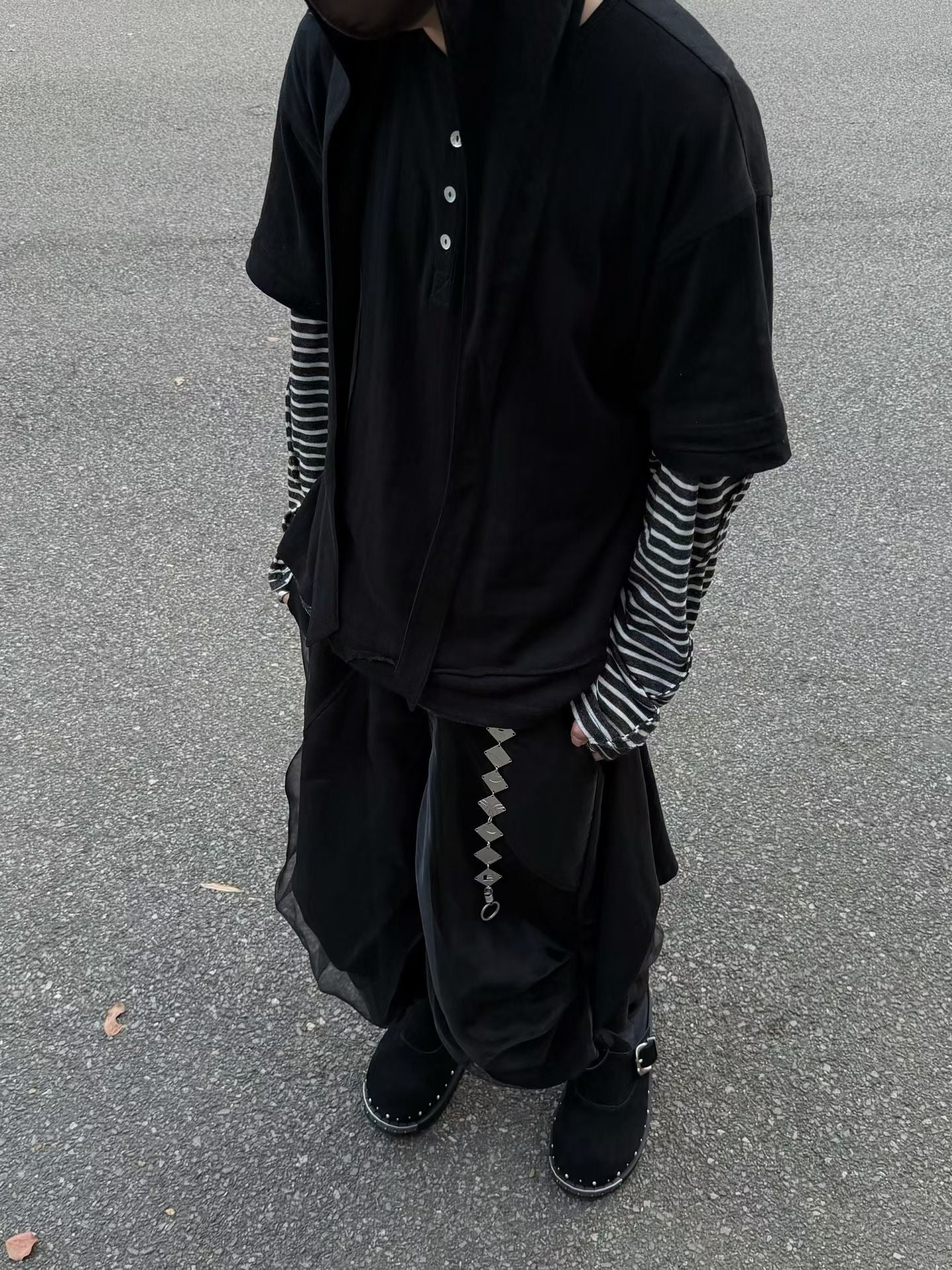 Relabel Hooded Henley Collar T-Shirt-Black