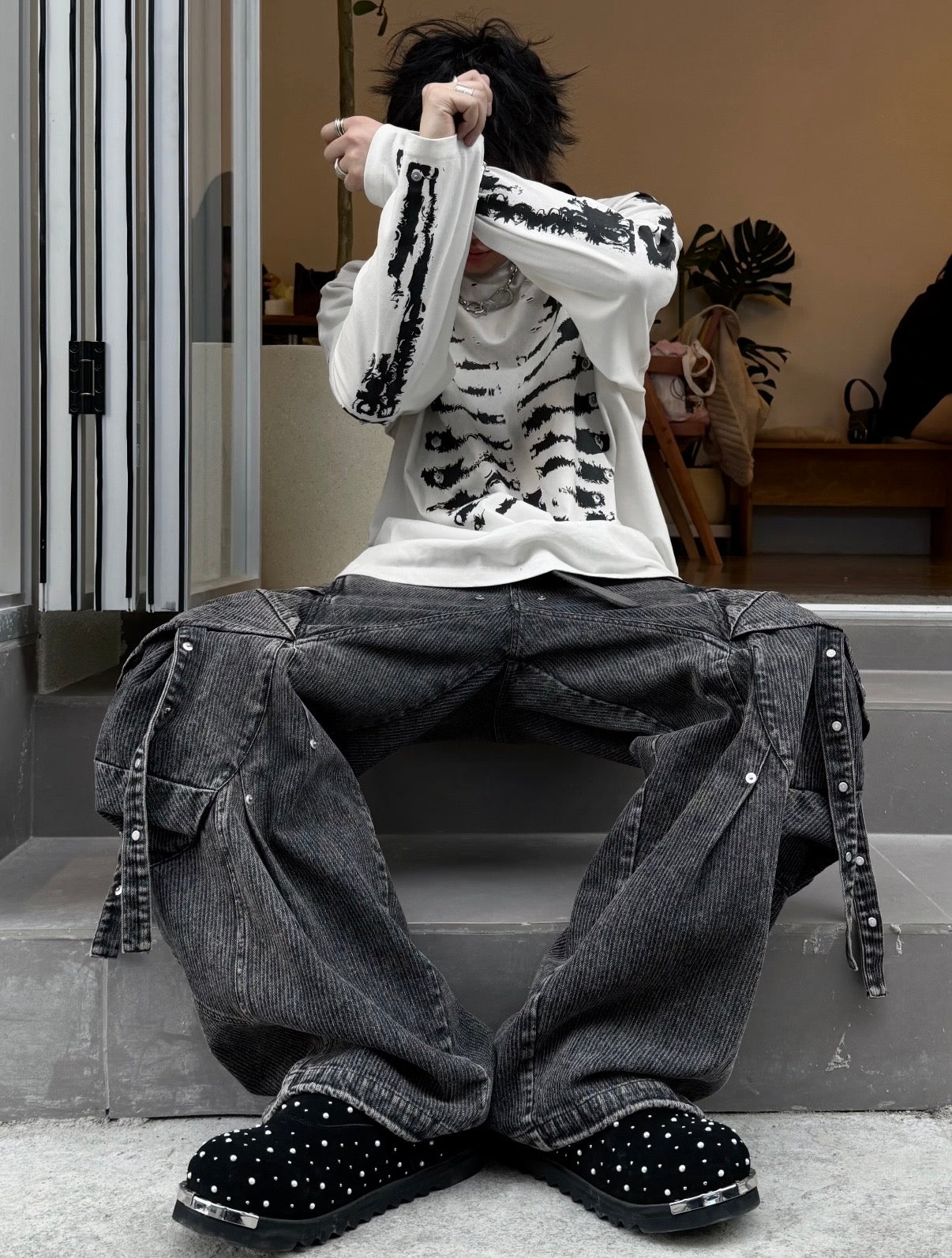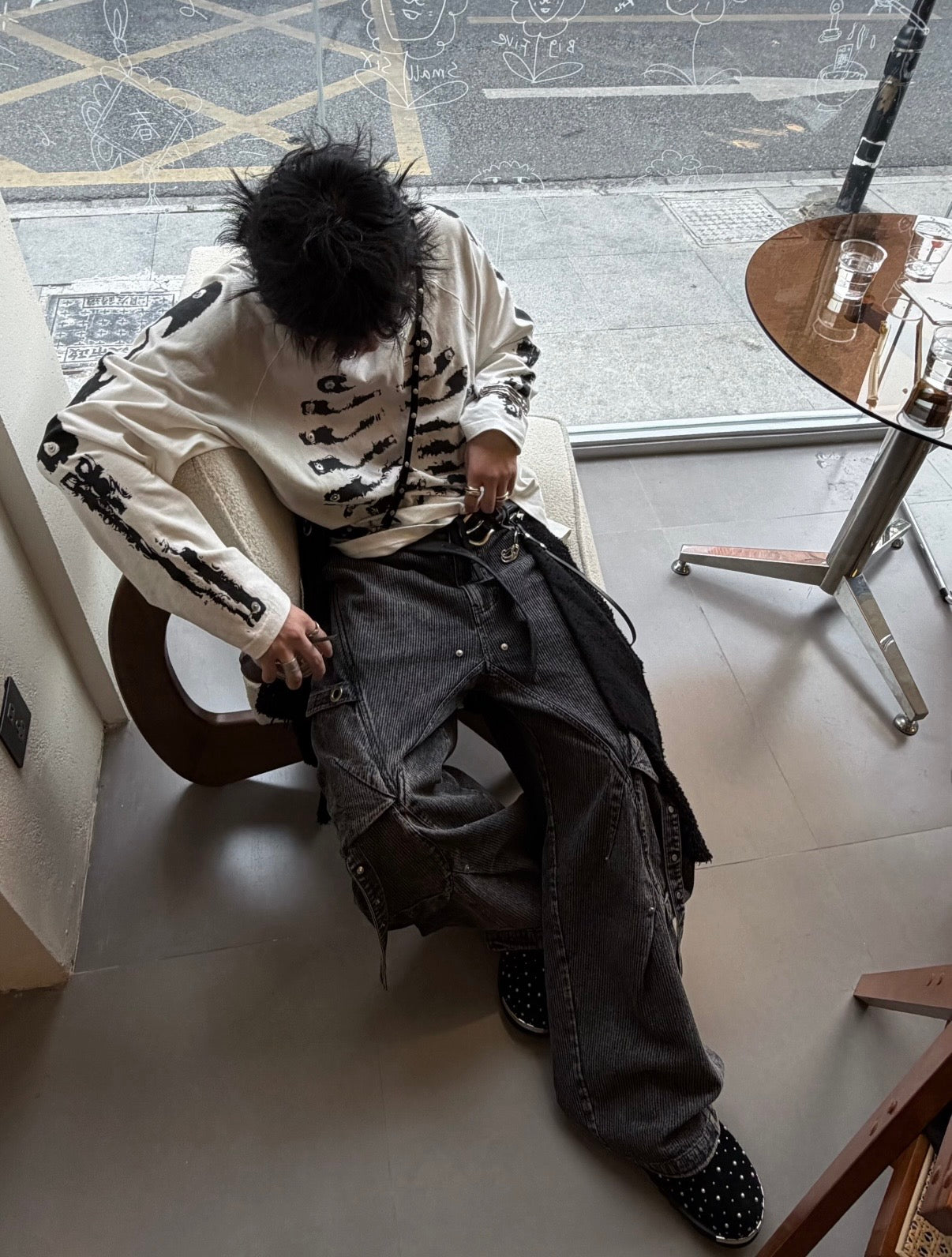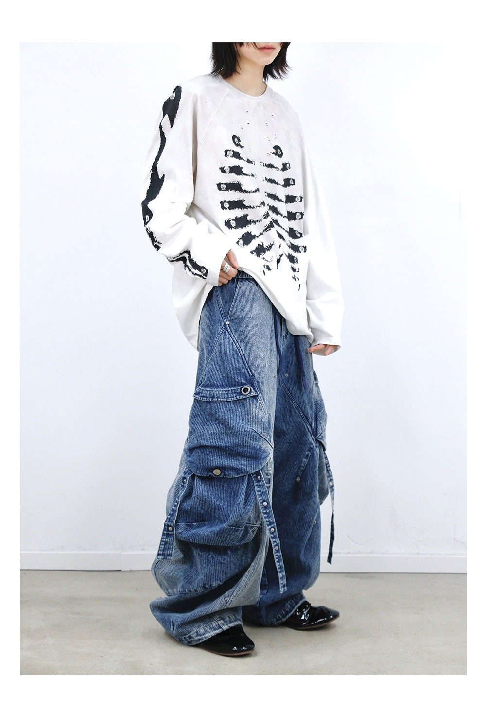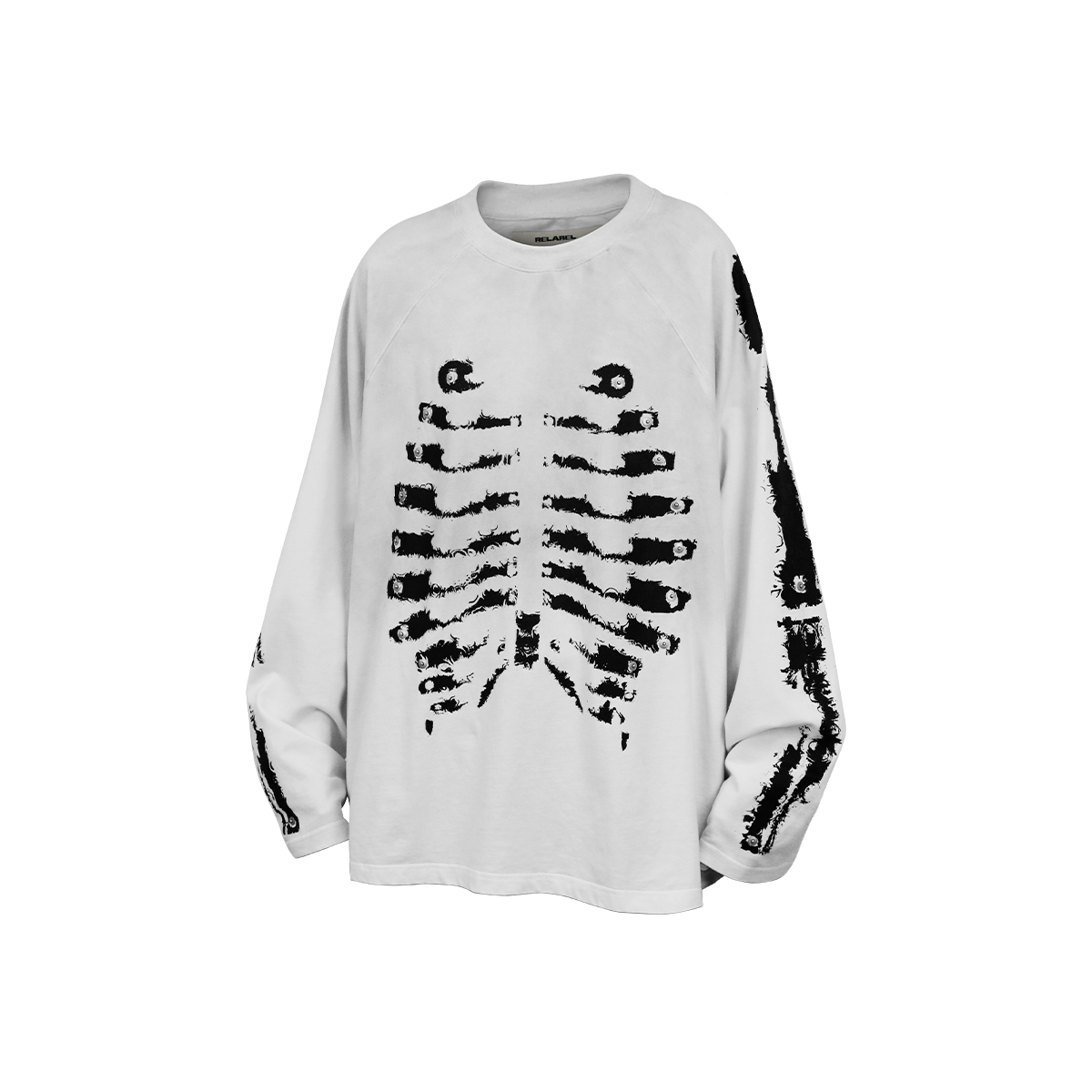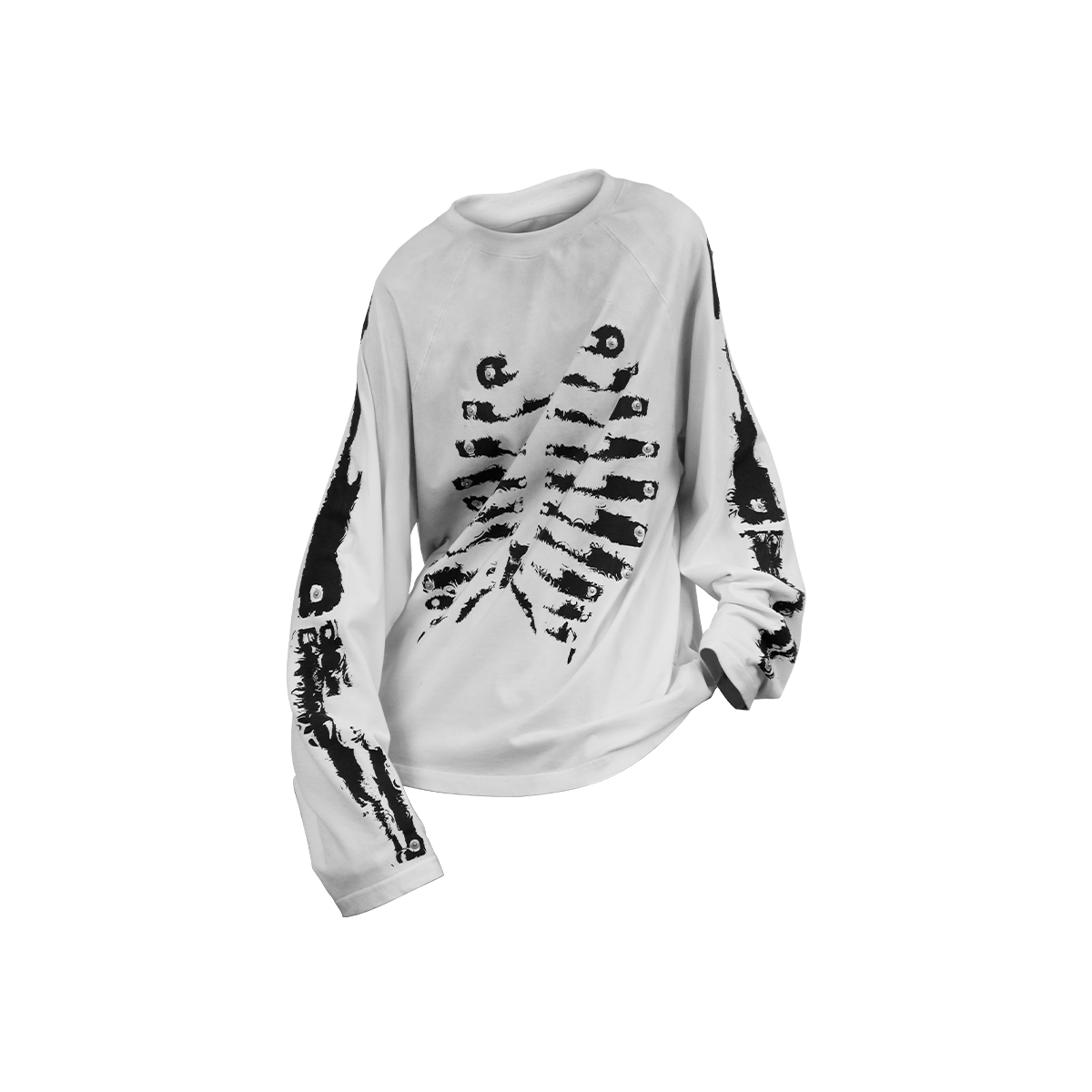 Front features a water-effect distressed skeletal print