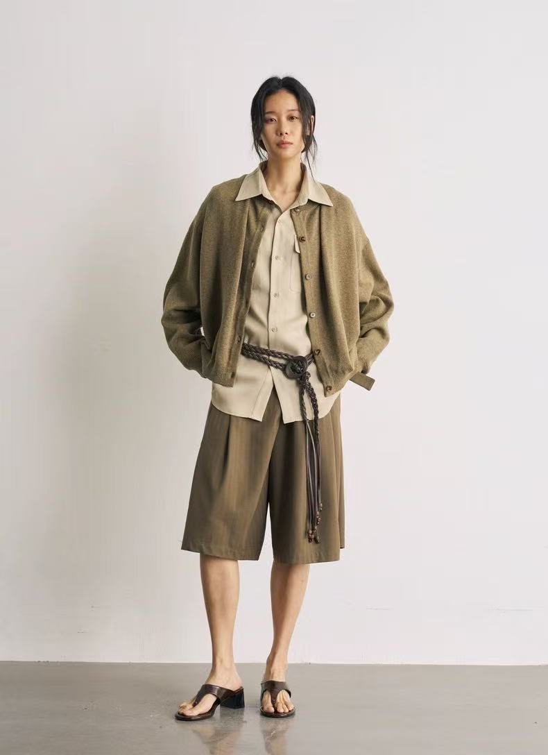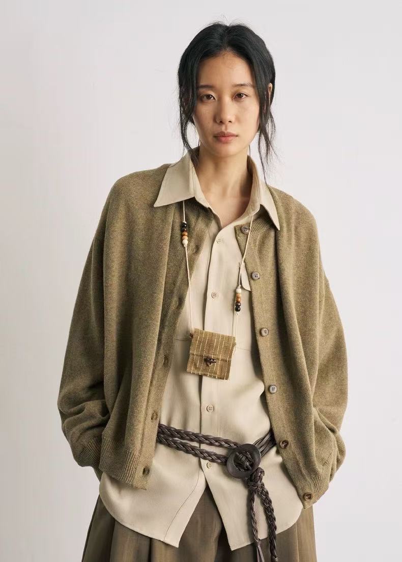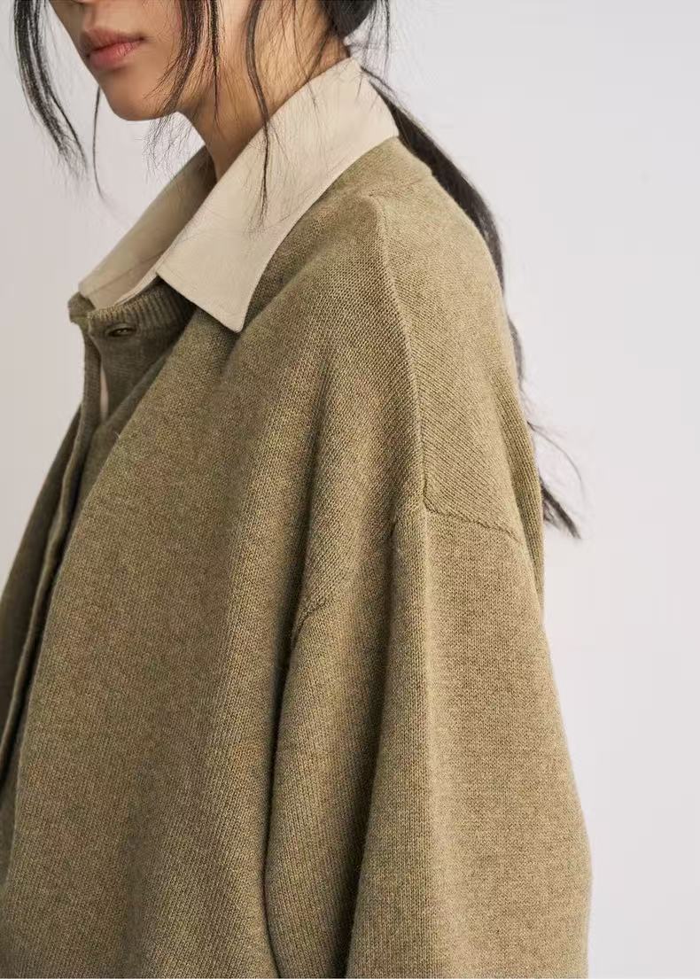 BALIANG Merino Wool Cardigan-Yellow Moss