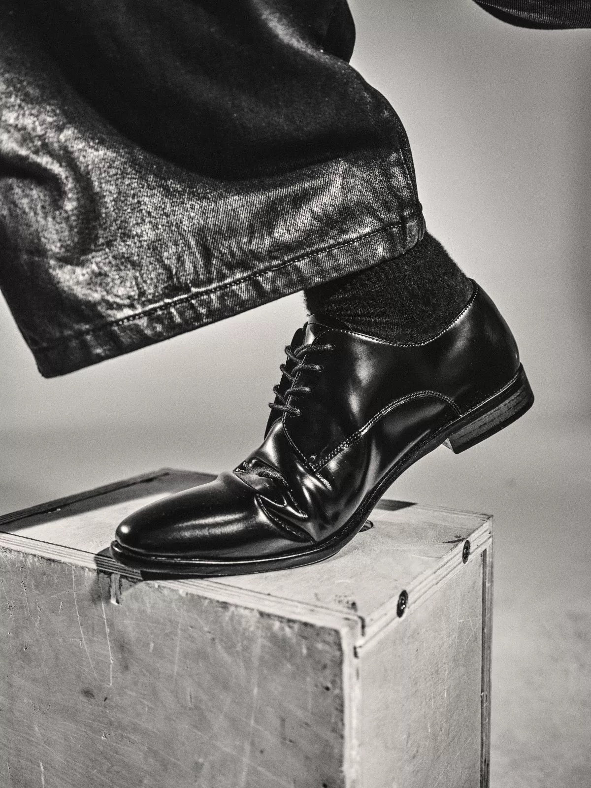 Upper: Crafted from Italian open-edge, glossy cowhide leather