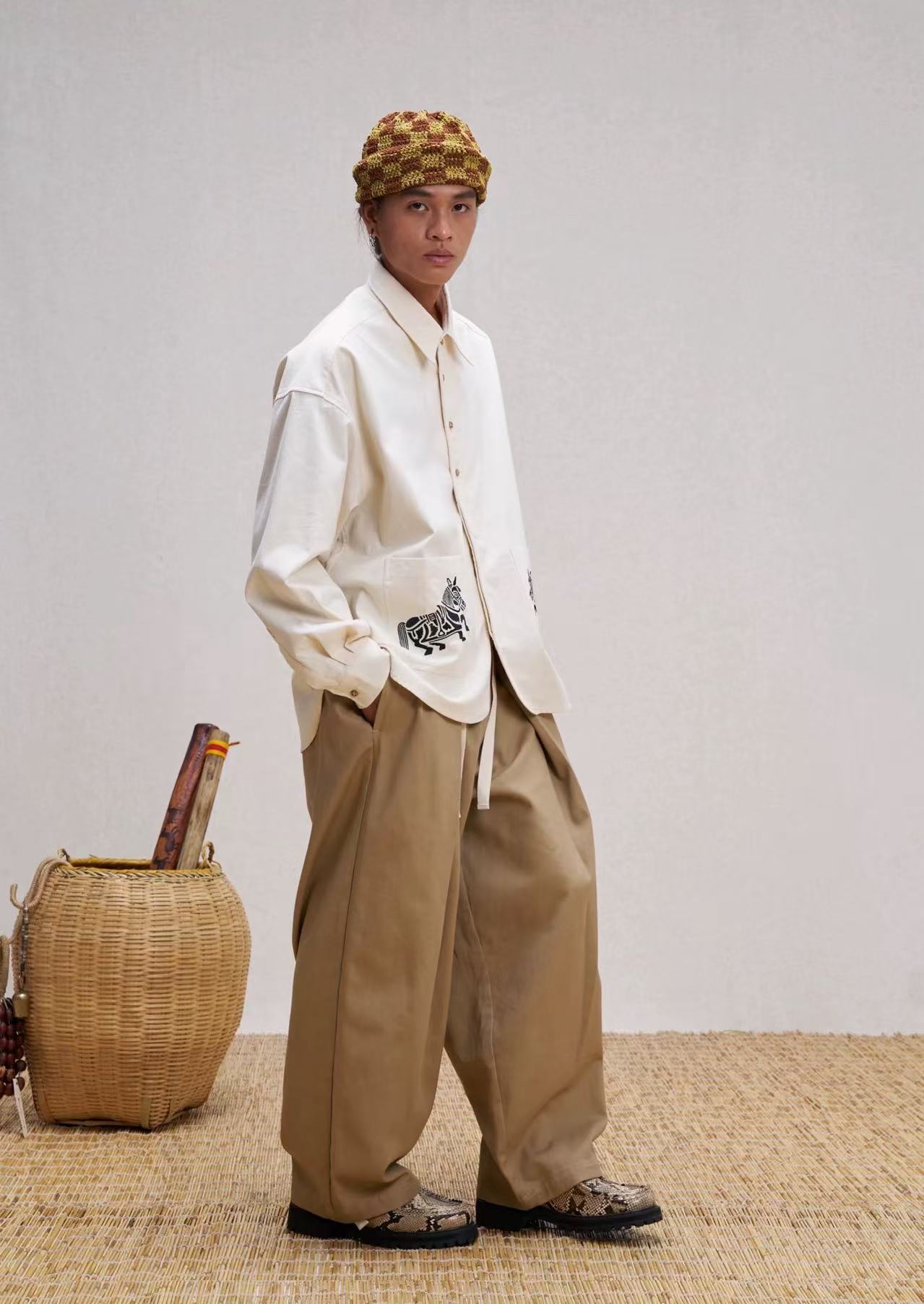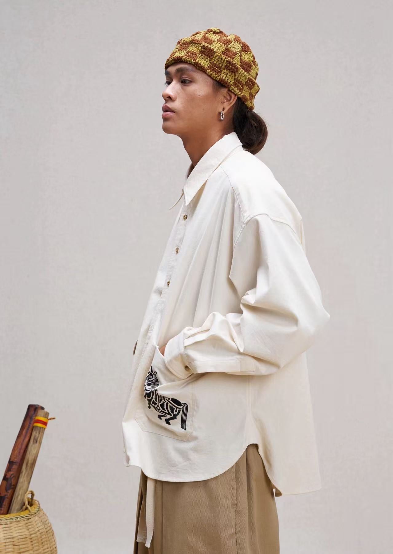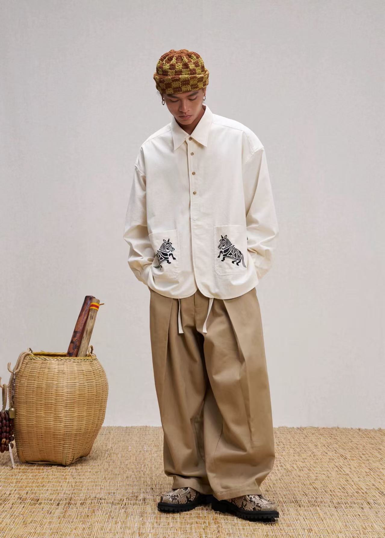 Mural embroidery on pockets