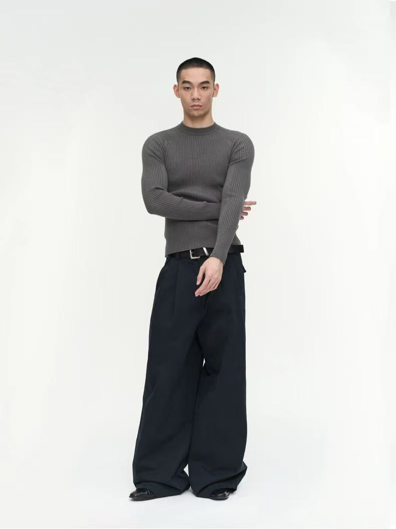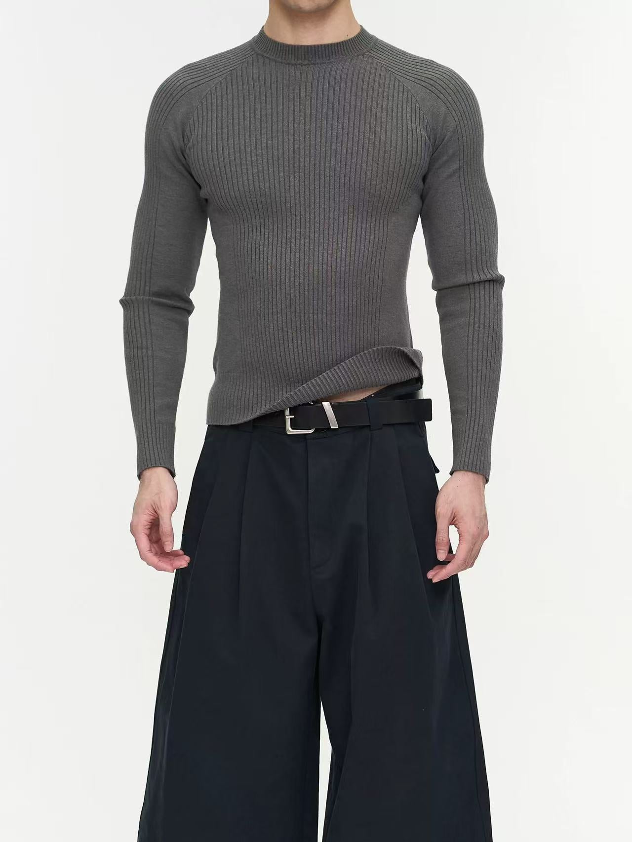 NFAI Ribbed Long Sleeve Top-Dark Grey