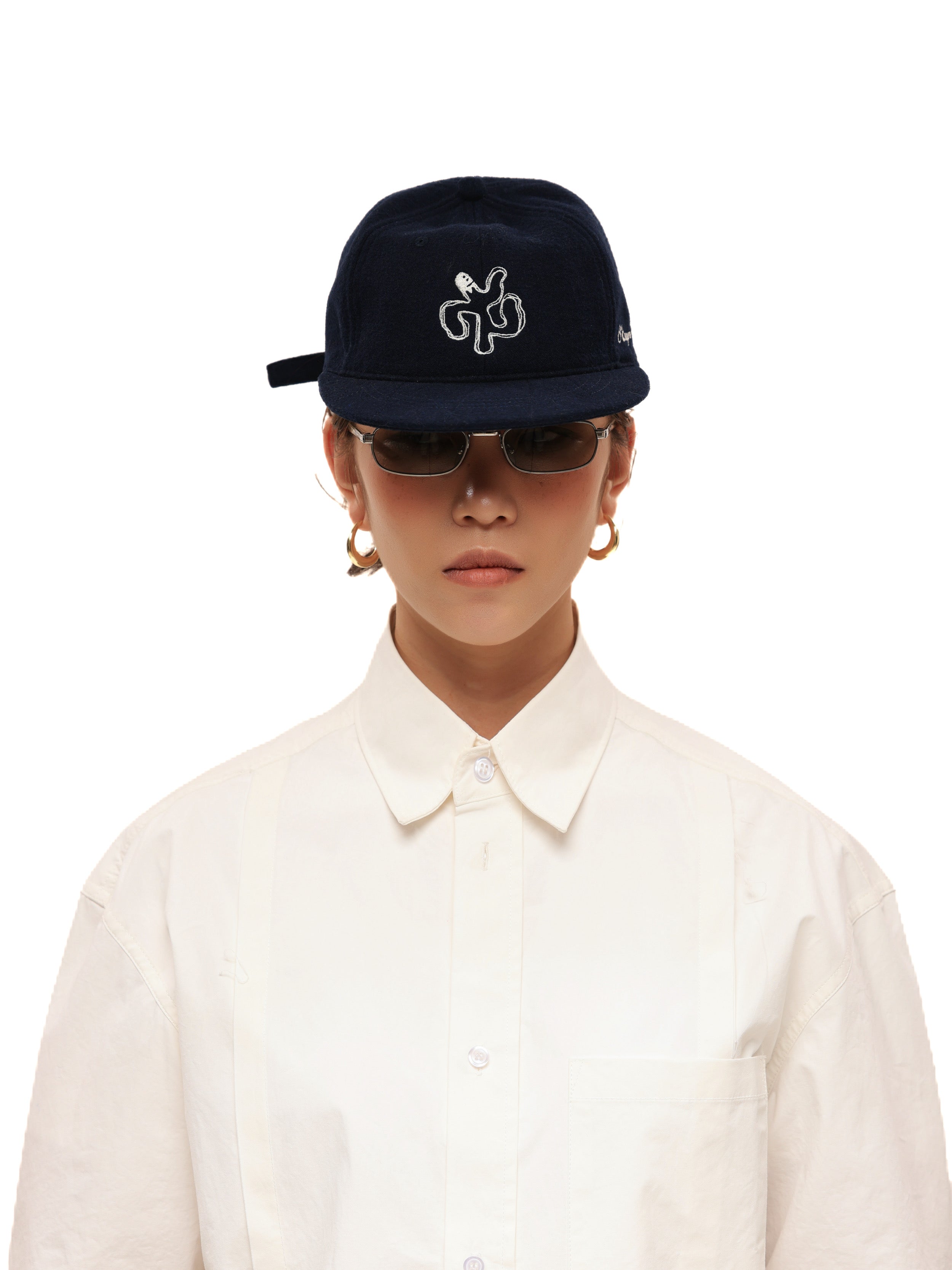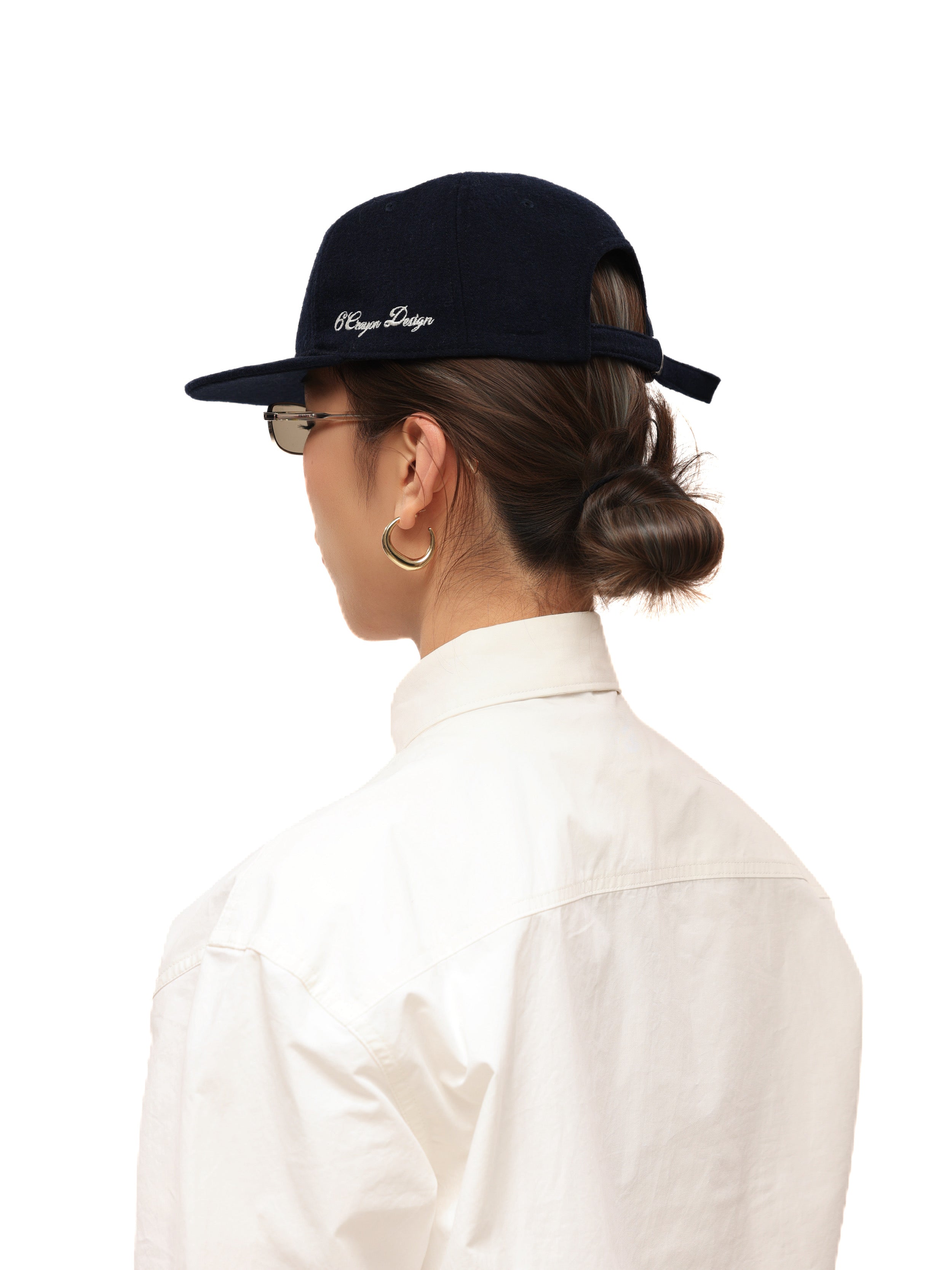 6CRAYON Embroidered Wool Blend Baseball Cap-Navy