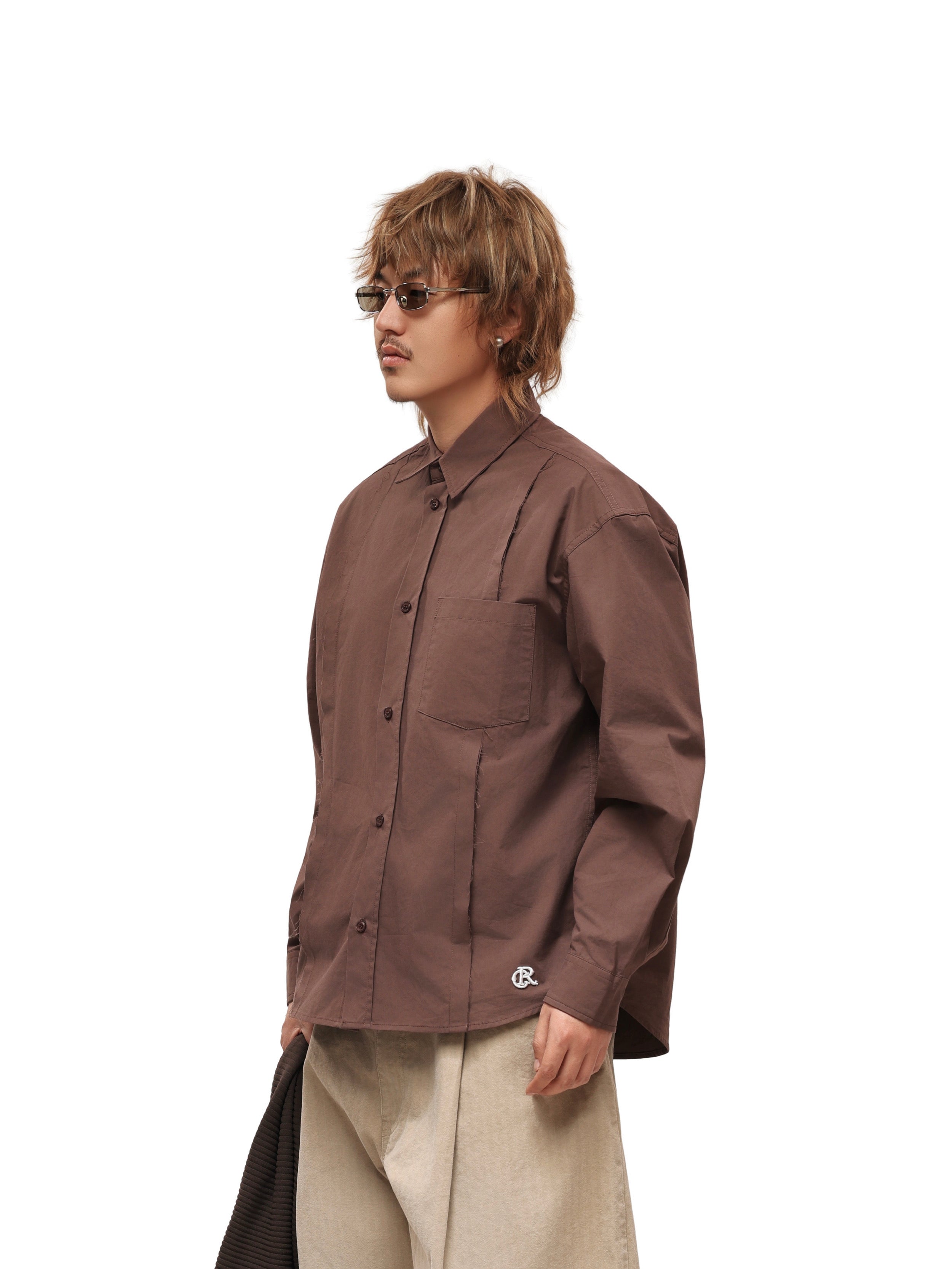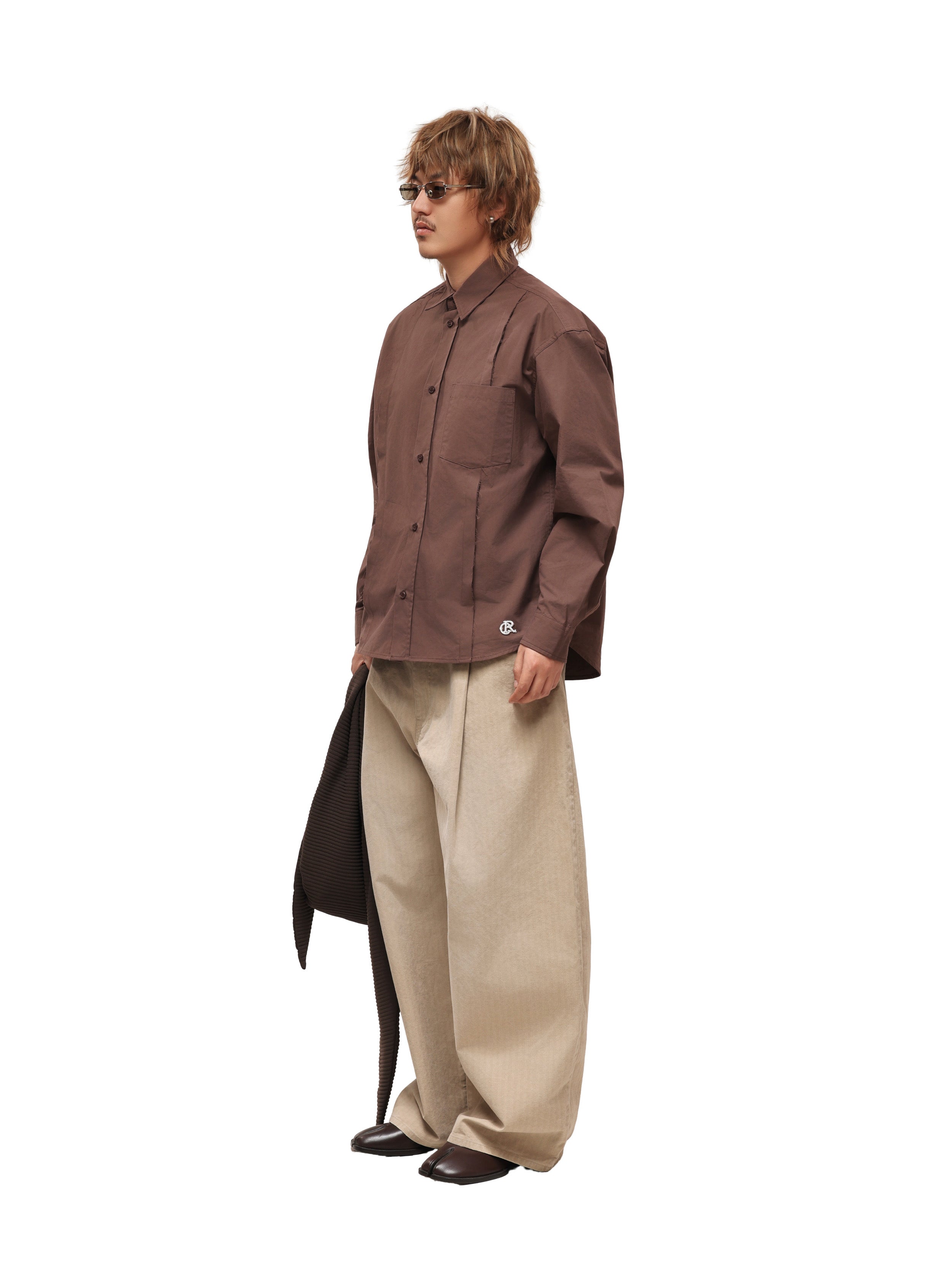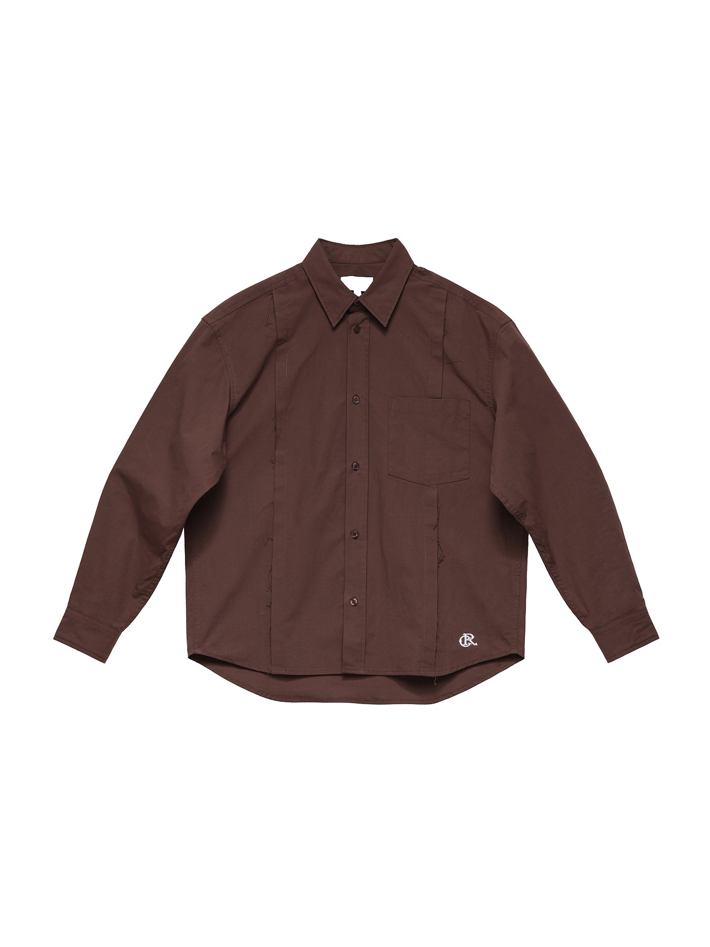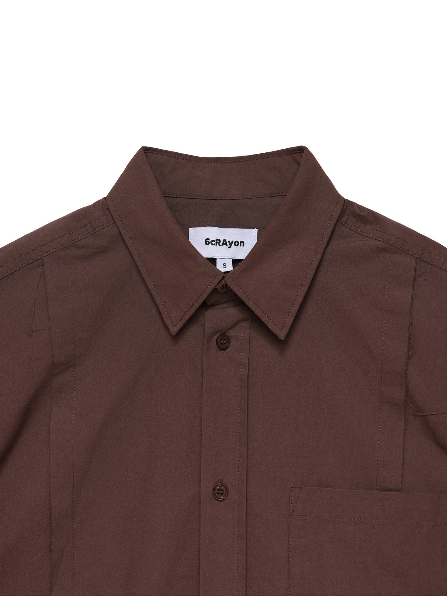 6CRAYON Patchwork Poplin Embroidered Shirt-Brown