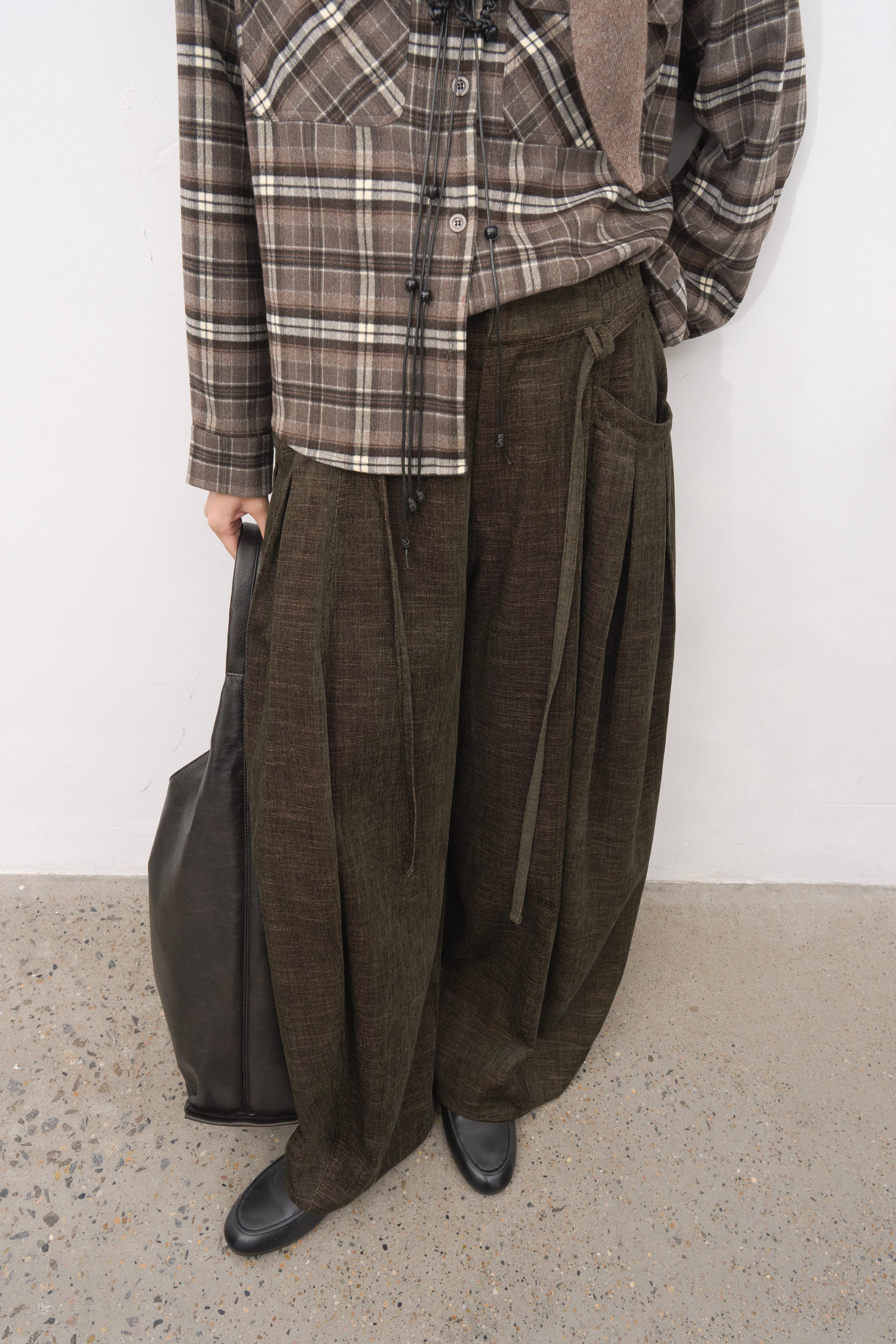 Baliang Brushed Balloon Pants-Wood Brown