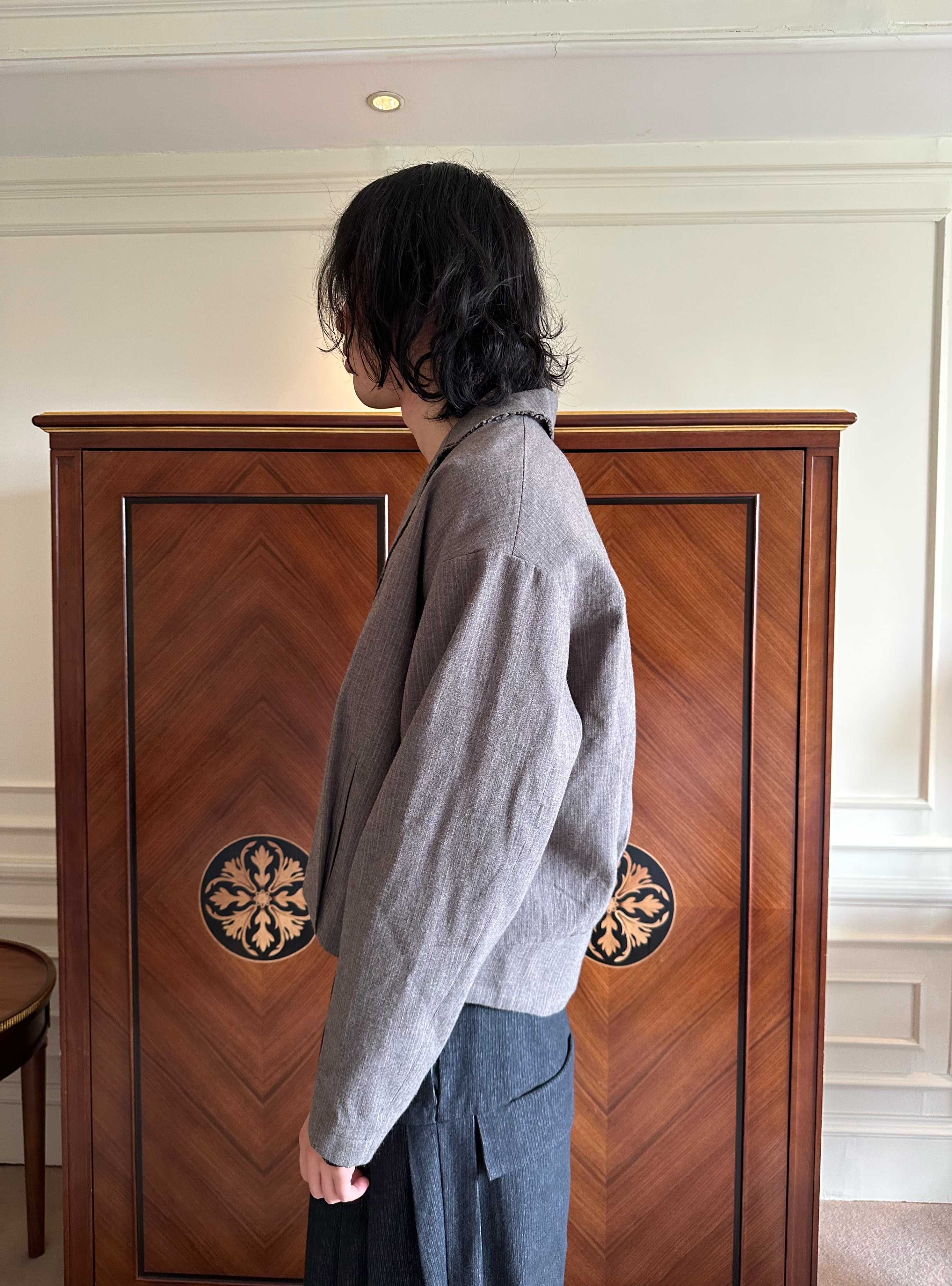 Note: the final version of the blazer does not feature distressed detailing at the placket. Please see the last image for reference, which reflects the item you will receive.